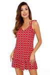 A red nightgown with charming hearts. It is distinguished by a lovely, feminine cut with shoulder straps tied at the shoulders. The neckline emphasizes the upper parts of the body at the same time providing a sense of comfort and convenience. The bottom is loose, airy and finished with a frill around the thighs. High quality product packed in a box with tissue paper inside.