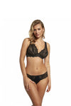 A sensual yet subtle underwired bralette bra. Created for women with medium and larger breasts. Soft cups with vertical cut made of lace reinforced with chiffon. The bra's construction provides full comfort of wearing and ideal bust support. A decorative bow between the cups. Non-removable, adjustable straps. Hook-and-eye fastening.