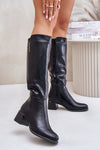 Jezzi brand boots made of eco leather are an elegant choice for colder days. The model is set on a block heel, which provides stability and comfort in wearing. The upper reaches before the knee, adding a stylish look and optically lengthening the legs. The zipper closure makes it easy to put on, and the shoe blanket insulation guarantees warmth. This model will be perfect for styling with dresses and skirts.