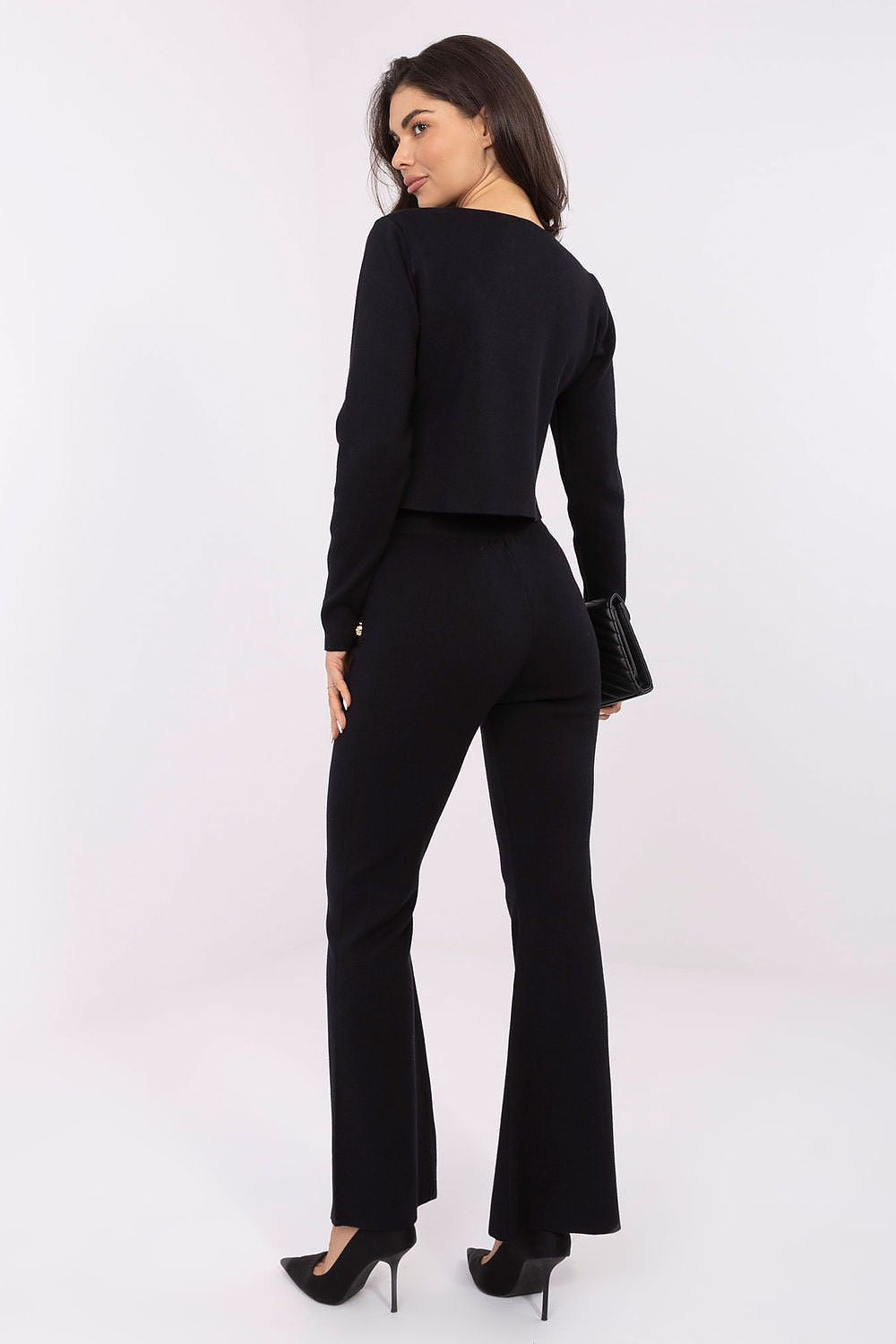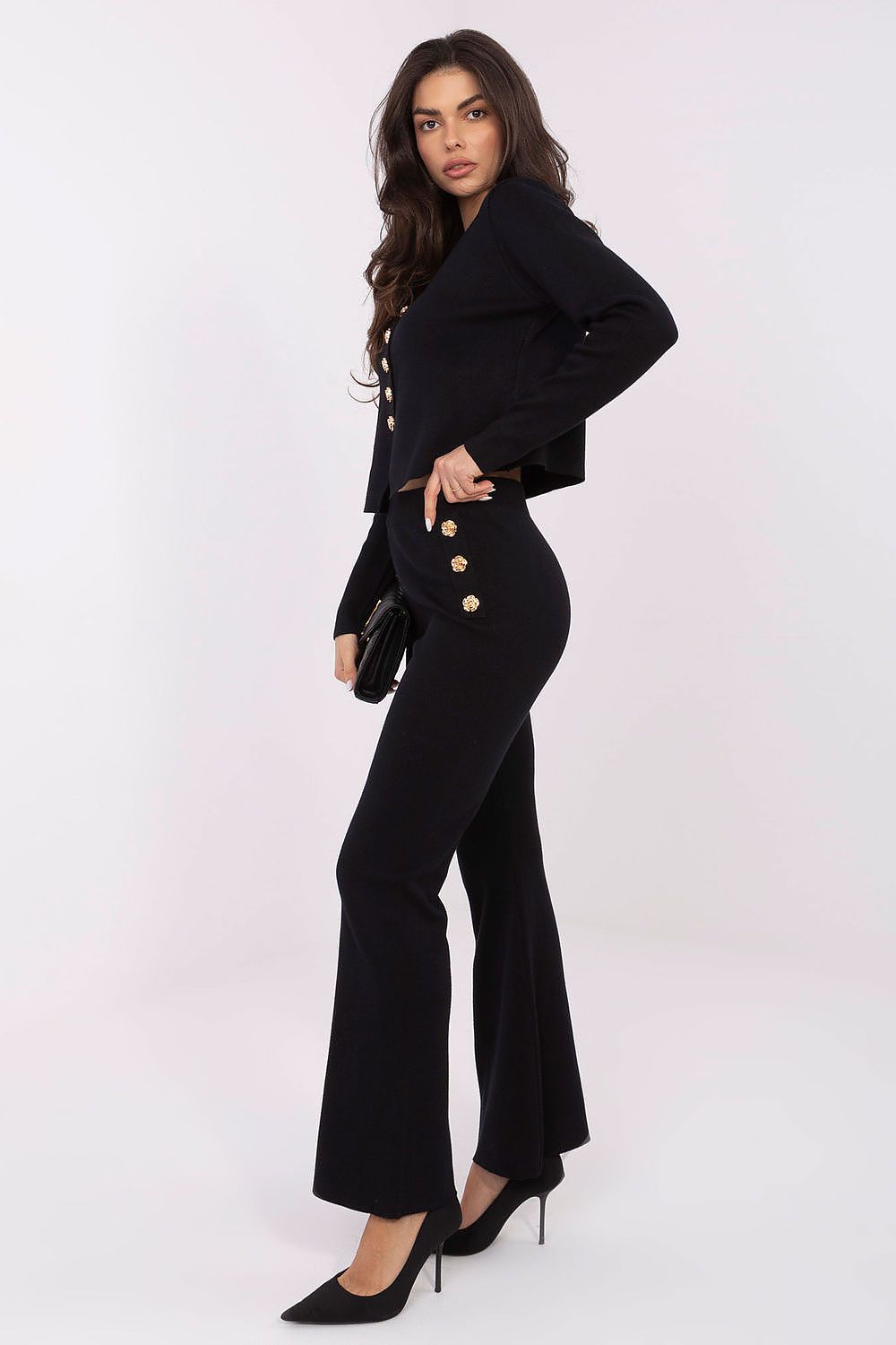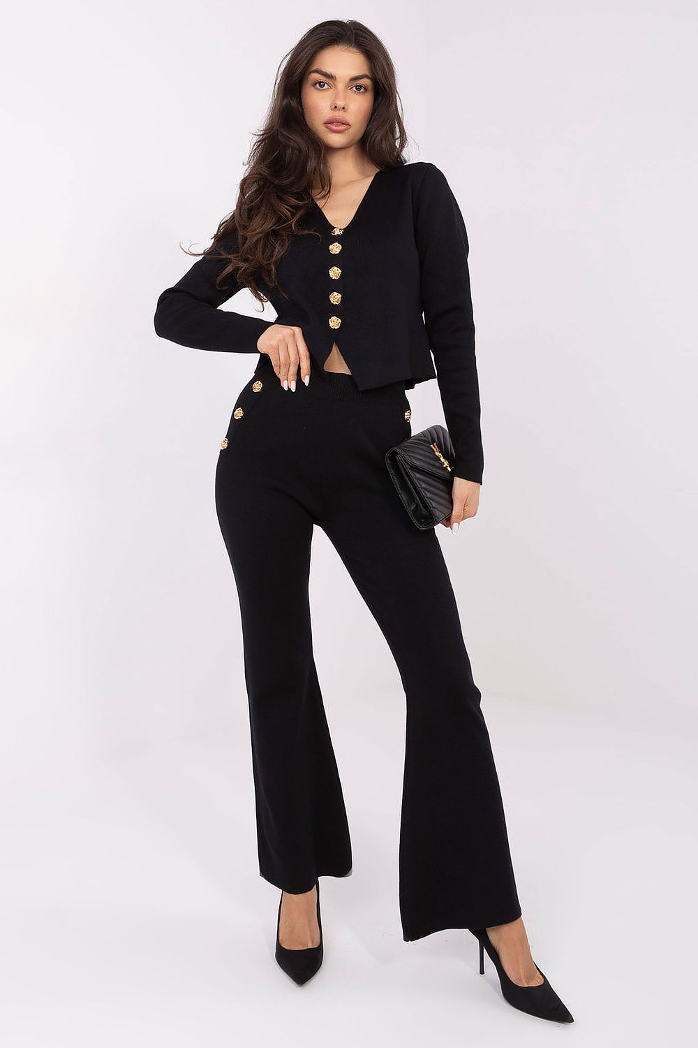 Women's set with a sweater and pants is a stylish proposition for women who appreciate elegance and comfort in their everyday stylings. Made of a soft blend of viscose and polyester, it delights with a smooth texture and comfort of wearing. The sweater fastened with snaps with a V-neck subtly emphasizes the feminine character, while the high-waisted pants with wide legs guarantee comfort and a fashionable look. The sewn-in elastic band at the waist ensures a perfect fit, and decorative buttons on the top of the pants add an elegant finish to the whole. The set will work great both for everyday wear, for work, and in more sophisticated stylings.