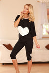 - blouse and trousers decorated with a viscose heart in a contrasting colour