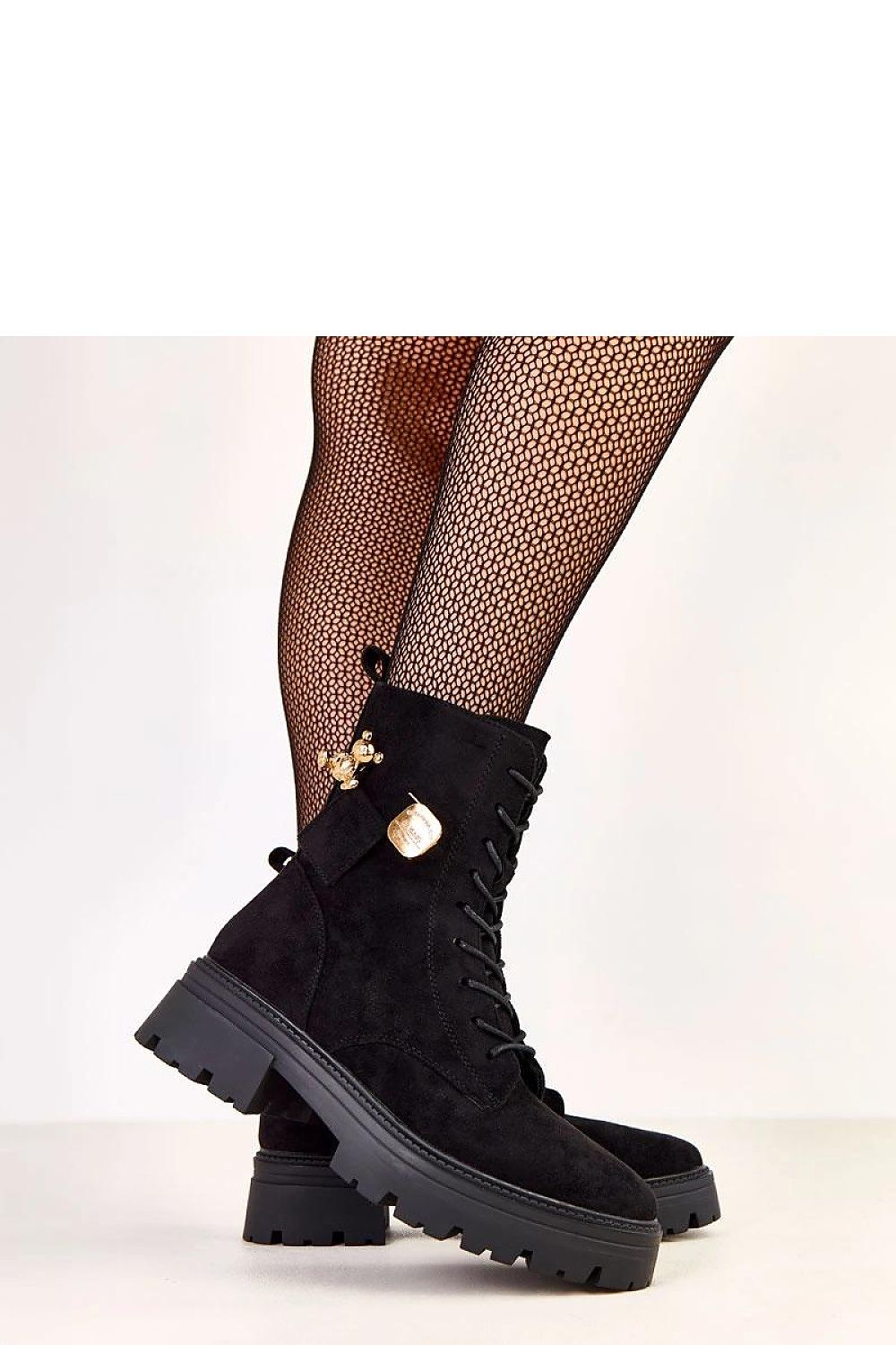 Stylish and comfortable women's work boots that perfectly combine modern style with user comfort. Made of high-quality suede-like eco leather, they look elegant and are easy to care for. The model has a round toe, insulation that provides warmth on cooler days, and a shaft height of 16.5 cm, perfectly fitting the leg. The 5.5 cm heel adds subtle height, maintaining stability and comfort. The shoes are equipped with laces at the front and a side zipper for easy putting on. The charm of the whole is added by a decorative gold teddy bear charm, introducing a fashionable, slightly jewelry-like accent. The synthetic insole guarantees durability and comfort. It is an ideal choice for women who appreciate style, comfort, and original details that add character to everyday outfits.