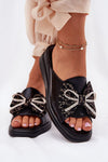Women's sandals from the Jezzi brand, made of eco leather, are an elegant option for warm days. Set on a wedge heel, they provide stability and comfort throughout the day. The model is distinguished by a bow at the front, which adds a subtle charm to them, perfectly complementing summer stylizations.