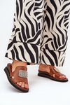 Women's sandals from the Jezzi brand made of eco-leather are the perfect combination of style and comfort. The gold ornament on the front adds elegance and subtle charm to them. Set on a wedge heel, these sandals guarantee comfort and stability while walking, and the soft insole ensures comfort throughout the day. Their lightweight construction makes them extremely comfortable, perfect for summer days, and they work well in both everyday outfits and more elegant occasions.