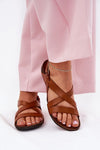 Women's sandals made of natural leather are a perfect choice for warm days. Set on a flat heel, they provide comfort and convenience throughout the day. The model fastened with Velcro, with three straps in the front, combines classic style with elegance. These sandals will be an ideal complement to summer outfits, perfectly matching both dresses and trousers.