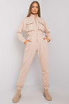 Dark beige cotton zip-up jumpsuit. Perfect for everyday wear.