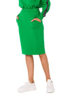Comfortable and practical knit sweatshirt skirt with pockets and elastic waistband. Sewn-on slip pockets on the front.