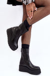 The women's ankle boots from the Maciejka brand are made of natural suede leather. Set on a massive platform. Model with a zipper. Zipper at the back of the upper. Rounded toes. The soft insole ensures comfortable use of the footwear. Lined only at the height of the foot. You will use this fashionable model for many autumn stylizations!