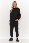 Das lässige Damen-Sweatshirt-Set ist die perfekte Kombination aus Komfort und Stil. Das Sweatshirt, das Sie über den Kopf ziehen, hat lange Ärmel und einen Rundhalsausschnitt, der sich besonders an kälteren Tagen eignet. Die gerippten Bündchen an den Ärmelenden und am unteren Saum des Sweatshirts sorgen für einen praktischen Aspekt. Die Vorderseite des Sweatshirts ist mit einer dezenten Stickerei mit dem Schriftzug „Macadamia“ versehen, die für einen Hauch von Eleganz sorgt. Die lange Hose ist dank ihres bequemen Schnitts und der Seitentaschen praktisch. Das normale Bein ist mit einem Standard-Kordelzug am Saum versehen. Dieses Set, erhältlich in Sand, Schokolade und Schwarz, ist die ideale Wahl für den Alltag und die Arbeit. Es verleiht einen femininen Touch und sorgt den ganzen Tag über für Komfort.