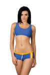 Jugendlicher zweiteiliger Badeanzug für aktive Mädchen und Frauen, perfekt für Pool und Strand. Das Kostüm ist vollständig gefüttert, sodass es auch bei Nässe nicht durchscheint. Oberteil in Form eines Tops mit bequemen, breiten Trägern, Unterteil mit passendem Schnitt.