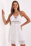 Das sommerliche Boho-Kleid ist die Quintessenz eines femininen, romantischen Stils. Es besteht aus einer leichten Mischung aus Baumwolle und Nylon und beeindruckt mit seinem Spitzenmuster und der subtilen Verarbeitung. Der ausgestellte Schnitt verleiht der Silhouette Leichtigkeit und Freiheit, perfekt für alltägliche Sommer-Stylings. Das Modell mit dünnen Trägern und einer Schleife im Nacken und Rücken ermöglicht eine perfekte Passform und betont den Rücken. Eingenähte, gepolsterte Cups bieten Komfort und Halt, ohne dass ein BH erforderlich ist, was das Kleid noch praktischer und bequemer macht. Die Länge in Kombination mit der Spitzenverarbeitung verleiht dem Kleid Leichtigkeit und sommerlichen Charme. Das Futter macht das Kleid bequem und blickdicht an den wichtigen Stellen und bringt gleichzeitig die Schönheit der Spitzendetails zur Geltung. Es ist eine ausgezeichnete Wahl für alltägliche Ausflüge, Spaziergänge, Sommerpartys oder Urlaubsreisen – ein Kleid, das Komfort, Stil und femininen Charme im Boho-Stil vereint.