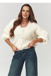 Soft, fluffy cardigan with buttons is the perfect choice for cooler days. Made of high-quality yarn with a touch of kid mohair, it delights with its delicacy and elegant appearance. It has a loose, slightly oversized cut with a dropped shoulder line and large buttons that give it character. The cardigan goes perfectly with jeans, a skirt, or elegant trousers, it will work well in both casual and more stylish outfits. Available in three timeless colors: ecru, mocha, and chocolate. Choose warmth, comfort, and a fashionable look all in one! Made in Italy.