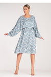 Midikleid mit floralem Muster aus hochwertigem Satin. Schnitt im Kimono-Stil. Das Kleid hat weite Ärmel mit Manschetten. Leichte Raffung in der Taille.