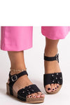 Die schwarzen Keilsandalen mit Blumen-Kifah sind innovative und moderne Schuhe und eine trendige Ergänzung für Ihre Sommergarderobe. Sie bestehen aus Kunststoff und haben einen mittelhohen Keilabsatz, der Komfort und Stabilität beim Tragen bietet. Dank der Schnalle können Sie die Sandalen ganz einfach an Ihren Fuß anpassen. Ihr metallischer Akzent macht sie zur idealen Wahl für heiße Tage und verleiht jedem Outfit Glanz und Eleganz.