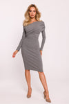 Das langärmelige Kleid aus geripptem Baumwollstrick besticht durch seinen taillierten Schnitt, der die Silhouette dezent betont. Über dem Kopf getragen bietet es hohen Tragekomfort, während der asymmetrische Ausschnitt ihm einen modernen, faszinierenden Charakter verleiht. Eine zusätzliche Bügelfalte an der Seite verleiht dem Styling Dynamik und Eleganz und lässt die Silhouette schlanker wirken. Das Kleid wurde in Polen entworfen und genäht, was für präzise Fertigung und hochwertige Materialien spricht. Ideal für besondere Anlässe und den Alltag.