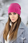 MARUNA ist ein eleganter Damenhut in Himbeerfarbe aus hochwertigem Wollgarn. Die zarte Verzierung in Form von zwei mit Perlen verzierten Schleifen verleiht ihm Charme. Ein angenähtes Band aus dem gleichen Garn und Falten an der Rückseite sorgen für einen perfekten Sitz. Der MARUNA Hut ist eine perfekte Ergänzung für Ihr Herbst-Winter-Outfit. Wir empfehlen außerdem passende Schals und Handschuhe aus der gleichen Serie.