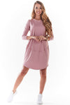 Kleid aus dünnem Strick. Das langärmelige Kleid kombiniert mit einer Ramon-Jacke und sportlichen Schuhen ergibt ein interessantes Styling für jeden Anlass. Unfertige Elemente und ein ausgeschnittener Saum verleihen dem Kleid Charakter. Entworfen und genäht in Polen.