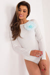 Elegante Bodys sind eine Kombination aus Stil und Komfort und bieten die perfekte Grundlage für zahlreiche Stylings. Sie sind aus hochwertiger Baumwolle gefertigt, bieten Tragekomfort und ein weiches Material und sind daher die ideale Wahl für viele Gelegenheiten. Das vorherrschende Muster ist eine schlichte Oberfläche, die dem Body Vielseitigkeit und Eleganz verleiht. Die langen Ärmel und der runde Halsausschnitt ergeben einen klassischen Schnitt, der sich ideal dazu eignet, ihn sowohl solo als auch unter anderen Kleidungsstücken zu tragen. Eine dekorative Blume auf der Vorderseite verleiht dem Body einen einzigartigen Charme und Subtilität. Diese zarte Verzierung verleiht Weiblichkeit und ist gleichzeitig ein interessantes Schmuckelement, das ins Auge fällt. Ein eleganter Body ist eine ausgezeichnete Wahl für Frauen, die Stil mit Komfort verbinden und subtile, aber dennoch auffällige Kombinationen schaffen möchten. Seine Vielseitigkeit ermöglicht es ihm, ihn zu verschiedenen Anlässen zu tragen und dabei den individuellen Geschmack und die Eleganz der Trägerin zu betonen.