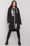 Sweatshirt mit verlängertem Schnitt und Reißverschluss. Sweatshirt in Mantelform mit Kapuze und Eingrifftaschen. Aufschrift auf der Vorderseite.