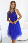¿Buscas un vestido que combine elegancia y ligereza? Este vestido evasé en un intenso color azul marino es la opción perfecta para una boda, una graduación u otras ocasiones especiales. La parte superior de delicado encaje con acabado de malla llama la atención y aporta clase, mientras que la parte inferior de tul fluido se adapta a la perfección al baile. El corte ligeramente entallado con cintura definida acentúa la silueta, y el cuidado acabado garantiza comodidad durante toda la noche.