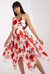 Vestido de verano con tirantes ajustables. Escote envolvente con copas acolchadas cosidas. Bajo asimétrico y fruncido. El vestido lleva forro.