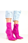 Stylish ankle boots for women made of soft ecological suede leather. A slim pointed toe and an 11-centimeter stiletto heel give them an exceptionally feminine character and visually lengthen the legs. The model has a 14.5 cm high upper that delicately wraps around the ankle and pairs beautifully with both pants and an elegant dress. The zip closure ensures easy on and off, while the fabric-lined interior guarantees comfort. These elegant boots are perfect for special occasions, meetings, or evening outings, a perfect choice for women who appreciate classic style with a modern twist.
