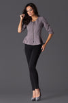 Chaqueta elegante con corpiño. Cinturón ancho que realza la cintura. Cierre de cremallera. Mangas 3/4.