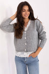 Elegant, yet casual women's sweater of standard length, which will work great both for everyday wear and for work. Made of a blend of polyester, wool, and acrylic, it ensures comfort, softness, and durability. The model stands out with a smooth pattern and subtle lace lining, delicate decorations appear at the neckline and at the bottom of the sweater, adding a feminine touch to the whole. Long sleeves and classic button fastening make the sweater practical and versatile in styling. An ideal choice for women who appreciate a combination of comfort and elegance in their daily outfits.