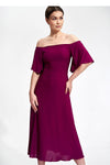 Vestido midi estilo español con mangas anchas. Parte superior entallada y parte inferior acampanada.