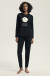 Comfortable women's pajamas with a classic cut, perfect for sleeping and relaxing at home. The long-sleeved blouse with a round neckline is decorated with a slogan that adds a modern, feminine character to the whole outfit. The long pants with a wide elastic waistband guarantee comfort and a perfect fit. The set is packed in a plastic bag, making it also perfect as a practical gift.