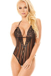 Seductive black Lorna body. Body with a deep neckline. Open crotch cut. Bust richly decorated with lace. Tied at the neck. Sexy cut on the butt. Product made in Poland!
