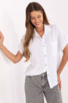 Casual women's shirt made of lightweight muslin is the perfect choice for everyday styling. Made of breathable cotton, it provides comfort even on warmer days. The smooth material and simple cut make the shirt look great with jeans, shorts, or a skirt. The model with a classic collar, short sleeves, and button closure is a combination of functionality and style. An additional pocket at chest height adds a practical character and gently emphasizes the casual look.