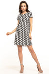 "Mini dress with a boat neckline with short sleeves. This dress has a double ruffle at the back. This cute cut will make you feel girly and the loose fit will not restrict your movements, plus it will hide any potential body imperfections. This dress is sure to become one of your favorites."