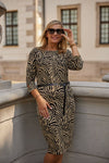 Very feminine and comfortable dress made of jacquard knit fabric with added elastane. Designed in accordance with the principles of the brand, that is, with mature women in mind. Kimono top with drooping sleeves, eco leather belt to adjust the waist circumference, subdued colors and soft and manageable knit fabric in a weight of about 280 gm2. All this makes the dress ideal for larger sizes.