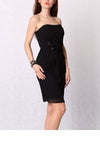 Elegant cocktail dress in black with covered zipper. At the front there are tasteful pleats and a decorative rose.