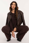 Casual women's sweater set, consisting of a sweater and pants, is the perfect choice for everyday wear. Made of a soft and pleasant to the touch blend of viscose, polyester, and nylon, it provides comfort and durability. The sweater with a classic cut has a round neckline and long sleeves, making it practical and comfortable to wear. High-waisted pants with long, wide legs ensure freedom of movement and a modern, stylish look. The smooth pattern makes the set versatile and easy to match with different accessories. It is an excellent choice for women who appreciate a combination of comfort with timeless simplicity.